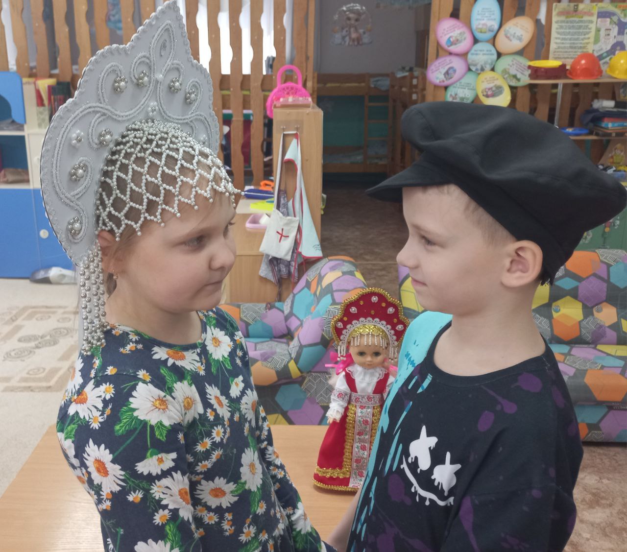 В январе, в подготовительной группе №3 прошло увлекательное занятие, посвященное старинным русским головным уборам. Ребята узнали, какие уборы носили женщины, девушки и мужчины на Руси, особое внимание уделив кокошникам.